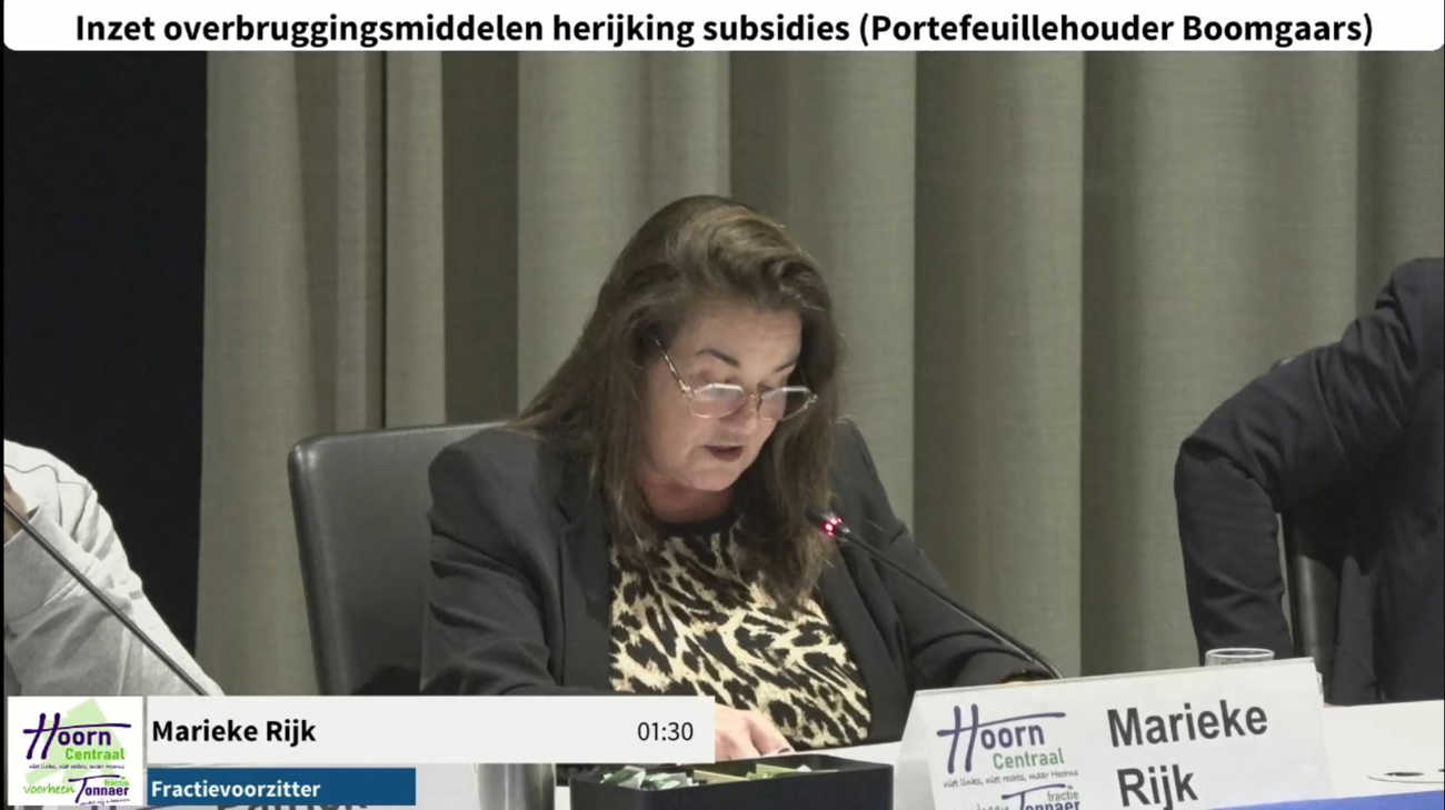 Fractievoorzitter Marieke Rijk van Hoorn Centraal is tevreden met de brede steun in de raad: